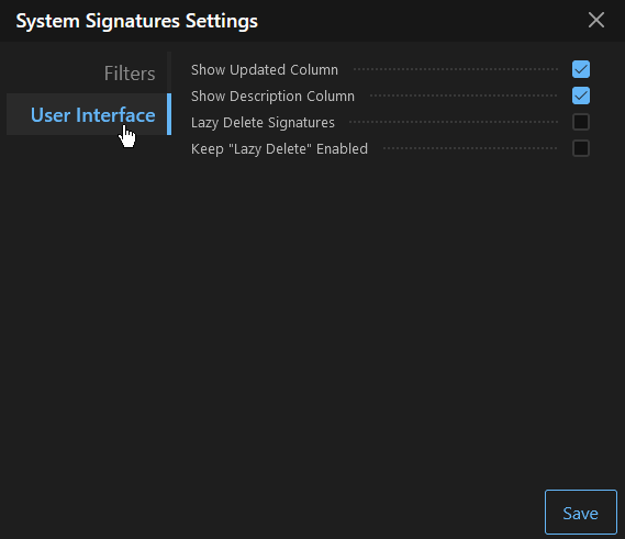 • Under the User Interface section, enable the ‘Show Updated Column’ and ‘Show Description Column’ options. The other options should be disabled.